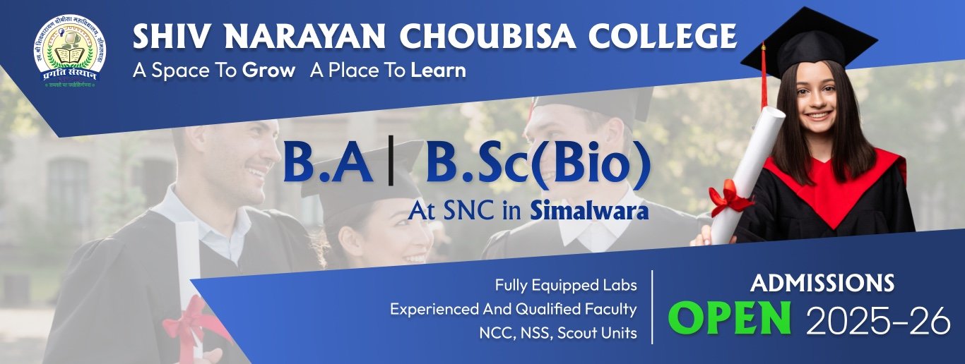 Shiv Narayan Choubisa College was established by Pragati Sansthan in 2005 at Simalwara. It is an initiative by Pragati Sansthan, which was established in 17th March 2004 by Mr. Prashant Choubisa. SNC College known as Excellence and virtue delivered through a pedagogy prepared by subject experts and industry leaders.